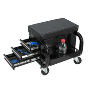 Rolling Creeper Garage Seat With 3 Built In Drawers, Rolling Tool Chest For Shop Or Garage - Black