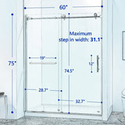 - Reversible Installation: The shower door can be adjusted to fit widths of 56-60 inches and supports left or right side installation as well as wall tilt within 1/2 inch.