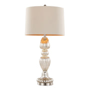- Elegant Design: The Spade Table Lamp features a captivating mercury glass construction with sleek metal accents, complemented by a minimalistic drum shade, offering a chic and contemporary styling to any room.