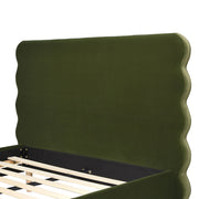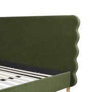 Stockholm - Queen Modern Wavy Headboard Platform Bed - Olive Green