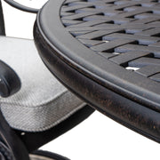 - Timeless Design: Elegant lattice-patterned seat back for charm in any setting. Lightweight and stylish aluminum construction complements any decor.