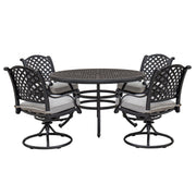 - 5-Piece Dining Set: Versatile set with four swivel chairs and a round table. Features a 2-inch umbrella hole for shade. Ideal for outdoor gatherings and patio dining.