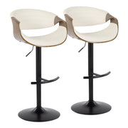 Symphony - Mid-Century Modern Adjustable Barstool With Swivel With Rounded T Footrest (Set of 2) - Black / Walnut / Cream
