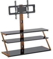 Tempered Glass Height Adjustable Universal Swivel Glass Floor Media Storage Stand With Mount Heat-Transferred Printing Metal Tube, Walnut / Black - Walnut / Black