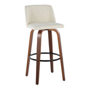 Toriano - Mid-Century Modern Fixed Height Barstool With Swivel With Round Footrest (Set of 2) - Walnut / Cream / Black