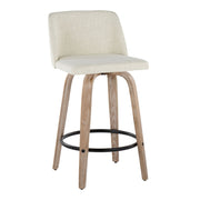 Toriano - Contemporary Fixed Height Counter Stool Swivel With Round Footrest (Set of 2) - Whitewashed / Cream