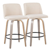 Toriano - Contemporary Fixed Height Counter Stool With Swivel And Round Footrest (Set of 2) - Light Gray / Cream