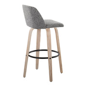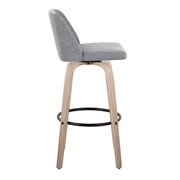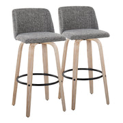 Toriano - Mid-Century Modern Fixed Height Barstool With Swivel With Round Footrest (Set of 2) - White Washed / Gray