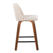 Toriano - Mid-Century Modern Fixed Height Counter Stool With Swivel & Square Footrest (Set of 2) - Walnut / Cream