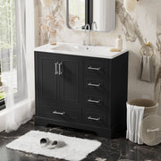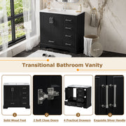 Traditional Bathroom Vanity With Resin Sink Combo Set, Black Bathroom Cabinet With Two Doors And Four Drawers - Black