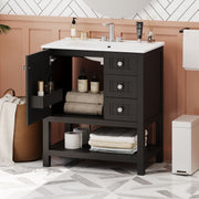 Transitional Style Bathroom Vanity Cabinet Combo With Ceramic Sink, Soft Close Door - Black