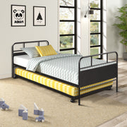 Twin Size Daybed Platform Bed Frame With Trundle Built In Casters - Black