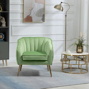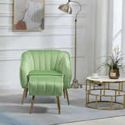 Velvet Accent Chair With Ottoman, Modern Tufted Barrel Chair Ottoman Set For Living Room Bedroom, Golden Finished - Grass Green