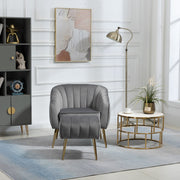 Velvet Accent Chair With Ottoman, Modern Tufted Barrel Chair Ottoman Set For Living Room Bedroom - Gray / Gold