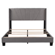 Queen Size Upholstered Platform Bed, Box Spring Needed - Gray