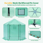 Walk-in Greenhouse Hexagonal Upgrade Reinforced Frame Heavy Duty Plastic Greenhouse Reinforced Thickened Waterproof Insulation (9.2*8.1 ft) - Green