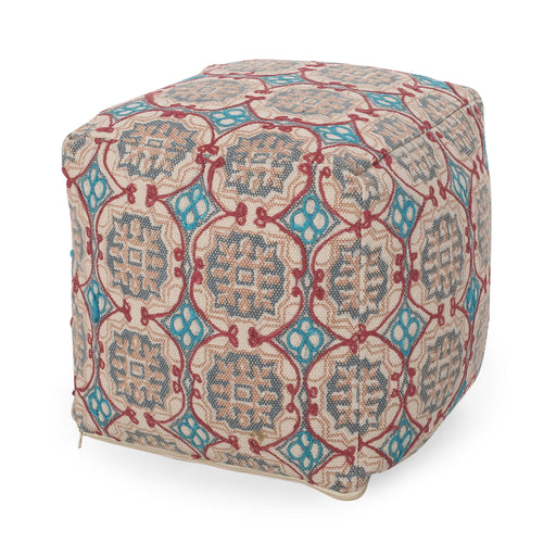 Enigma - Yarn And Cotton Square Pouf Ottoman With Polystyrene Beads - Red / White