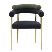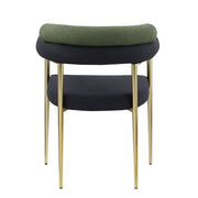 Dining Chairs (Set of 2), Mid-Century Modern Dining Chairs, Kitchen Dining Room Chairs, Round Boucle Backrest Sherpa Dining Chair With Brushed Bronze Metal Legs - Dark Green Black