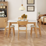 - 5-Piece Dining Set: Includes one solid wood frame table and four upholstered chairs for comfortable, spacious dining