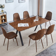 Suede Backrest Chairs With Metal Legs & Herringbone Dining Table Set