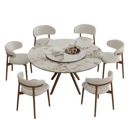 Ver todos los detallesRound Dining Table With 360° Rotating Lazy Susan For Dining Room & Kitchen, 6 Chairs - White