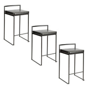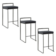 Fuji - Contemporary Stackable Counter Stool (Set of 3) - Black - Faux Leather