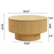 Circular Coffee Table With Stripe Design And Storage Space - Natural Wood