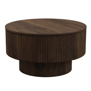 Circular Coffee Table With Stripe Design And Hidden Storage - Walnut
