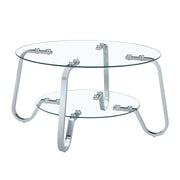 Retro Minimalist Style Metal Frame Double Layer Tempered Glass Coffee Table - Silver