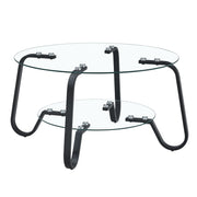 Retro Minimalist Style Metal Frame Double Layer Tempered Glass Coffee Table - Black