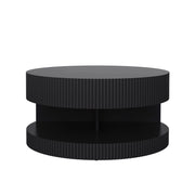 Round Coffee Table With Storage, Vertical Stripe Design - Black