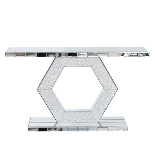 Ver todos los detallesSparkling Crystal Hexagon Mirror Entryway Premium Modern Foyer Console Table With Diamond Glass Effects, Dual Tier Luxury Sofa Table - Silver