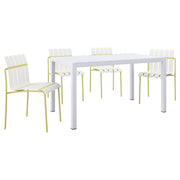 4 Piece Set Of Modern Color Block Designed Single Chairs With Long Table