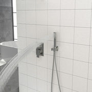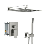 - Included Components: Comes with a 10-inch square rain shower head, shower arm, handheld shower head, 59" hose, holder, and control valve.