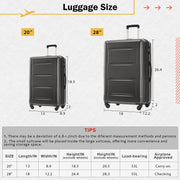 Size: 20 IN luggage dimensions(included accessories): 13"x8.9"x20.5";28 IN luggage dimensions(included accessories):18"x12.2"x28.3"; Expandable travel bag dimensions :longest length: 23", shortest length: 15.7", width: 8.3", height(without extension): 12.2", expansion part height: 3.9";Toiletry bag dimensions: 10 "x5.5"x4".