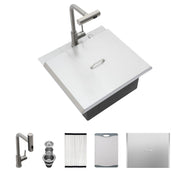21" Drop In Kitchen Sink With Pull Out Faucet And Sink Cover, 16 Gauge - Brushed Nickel