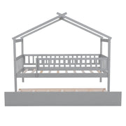 Twin Size House Bed & Twin Size Trundle - Walnut