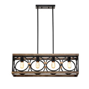 4 Light (Bulb No Included) Farmhouse Rectangle Pendant Light, Wood Texture Vintage Rustic Chandeliers Metal Industrial Hanging Light Fixtures For Kitchen, Entryway, Dining Room - Black / Natural