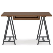 - Features a wide, extra thick table top surface, integrated keyboard tray and sturdy charcoal Gray powder coated metal sawhorse supports