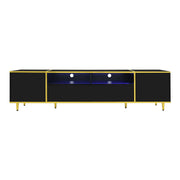 Modern TV Stand For TVs Up To 80", Entertainment Center With 2 Shelves And LED Lights, TV Storage Cabinet With 2 Drawers, 2 Cabinets And Metal Legs For Living Room - Black
