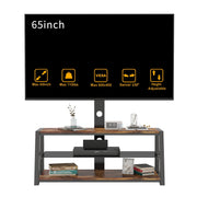 Wooden Storage TV Stand Tempered Glass Height Adjustable Universal Swivel Entertainment Center With Mount TV Stand - Black
