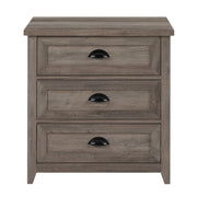 Farmhouse Framed 3 Drawer Nightstand With Cup Handles - Gray Wash