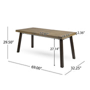 Acacia Wood Dining Table With Slat Design - Gray / Rustic Metal
