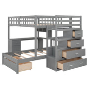 Full Over Twin Bunk Bed With Desk, Drawers And Shelves - Gray
