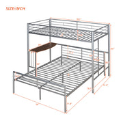 Twin Over Full Bunk Bed With Desk, Ladder And Quality Slats For Bedroom - Silver