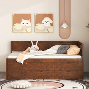 Twin Size Daybed With Drawers And Shelves - Walnut