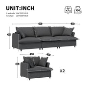 Living Room Set Modular Sectional Couch, Upholstered Sofa & Armchair & Movable Ottoman