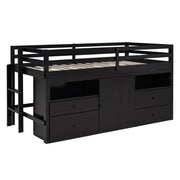 Twin Size Loft Bed With 4 Drawers, Underneath Cabinet And Shelves - Espresso