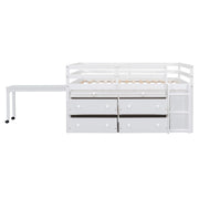Twin Size Loft Bed With Retractable Writing Desk And 4 Drawers, With Lateral Portable Desk And Shelves - White