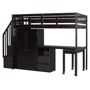 Twin Size Loft Bed With Stairs, Bookshelf, Drawers, Desk & Wardrobe, Space Saving Multifunctional Furniture - Espresso